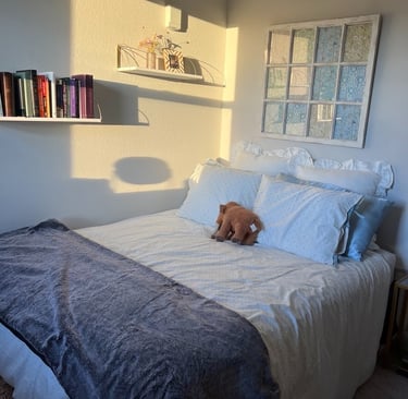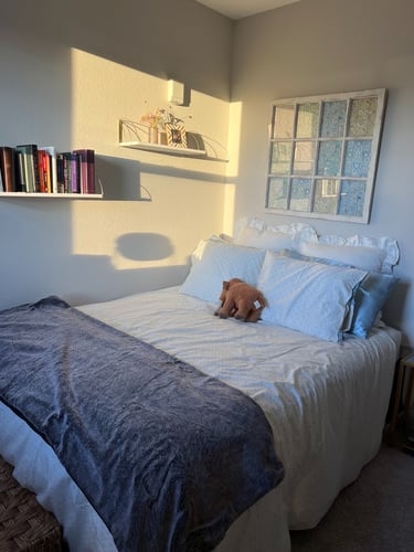 Hey everyone! I recently went through a really weird phase of struggling quite with getting a cute and comfortable bedding set up. I realized that during all of college my parents would always help me move in and I never had to do it on my own. When I decided to move back to Denver (where I graduated from), it was all on me to figure out what I liked. Take it from me who got a whole bed and then returned it for a simple bed frame on amazon, sometimes less is more. This post will share what I found and things I decorated my room with!