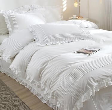 Last but not least is pillows! The girls know how much we love to put a million pillows on our bed just because it looks pretty- and you know what I love it. I was confused for a second on the perfect way to lay pillows out in terms of throw pillows, comfy sleeping pillows, and decorative ones for in front. I guess it depends on what you want to do. I've seem some people go more simple and that looks great and then there's people like me who love big ruffly pillows and adding a ton to the point of it being incredibly unnecessary in the best way. I ended up having two big throw pillows in back because I do not have a head board (26 by 26), the middle pillows are the ones I sleep in, and then I have two decorated ones in front that came with my duvet set. Overall, have fun with it and play with patterns and textures. Pillows are your chance to tie in all your colors! Here are my pillows as well as others that I like: